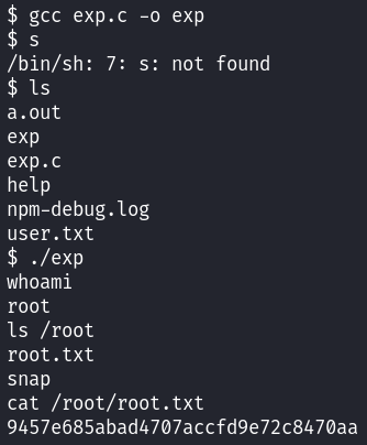 The next step is to escalate to root. uname -a tells me that Ubuntu 16.04.4 is running, which has this local privilege escalation CVE. I transfer the exploit code to the machine, compile it, and run it and become root. 😴