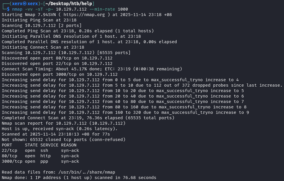 The nmap scan on the machine shows that ports 22, 80, 3000 are running.