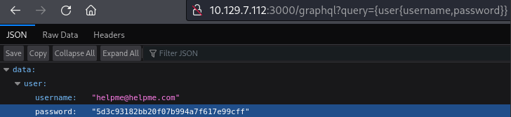There’s a default apache server running on port 80, which doesn’t help us yet. Port 3000 is accessible from my browser and it’s running a web server. Fuzzing port 3000 gives us the /graphql endpoint, which lets us query anything using GraphQL.