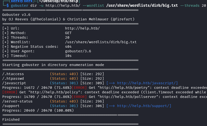 Next, we fuzz port 80 and realize that there’s something running on /support.