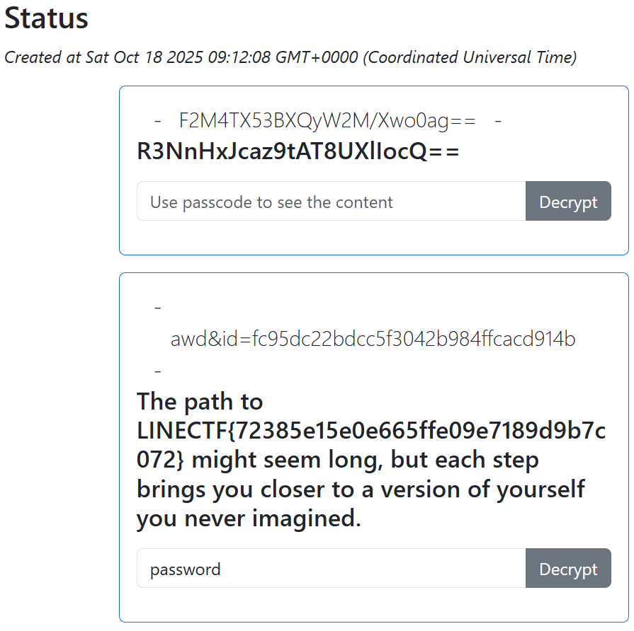 Since the selectors on the page are the same, the admin bot just adds to our post, and we can easily decrypt the contents using the password we used to create the post.