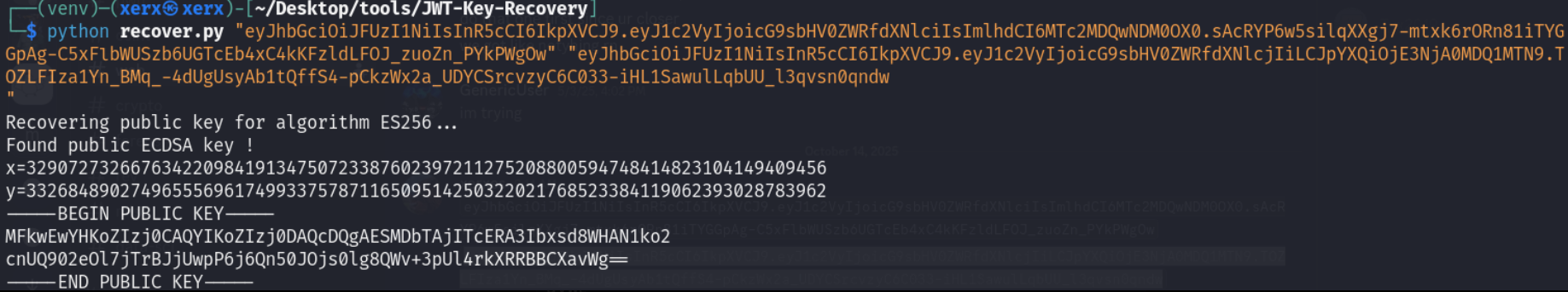 I also remembered from past challenges that it’s possible to derive the public key of a JWT if you have a JWT signed using its private key.